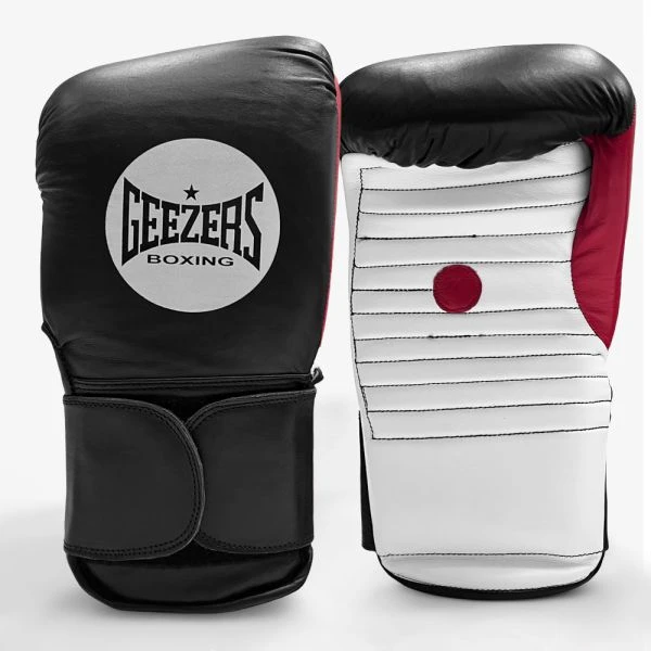 Geezers Elite Pro Coach Spars – Made from high quality genuine leather and impact shock foam construction for the ultimate durabilty and safety. The glove and pad combined design allows the trainer to tap back whilst doing pad work, meaning both defensive and attacking manoeuvres can be practiced. These Coach spars also have an attached thumb, this means the coach doesn’t have to worry about getting hit in the thumb and causing injury. The double Velcro wrist straps and glove fit keep the hands comfortable, secure and protected during use.