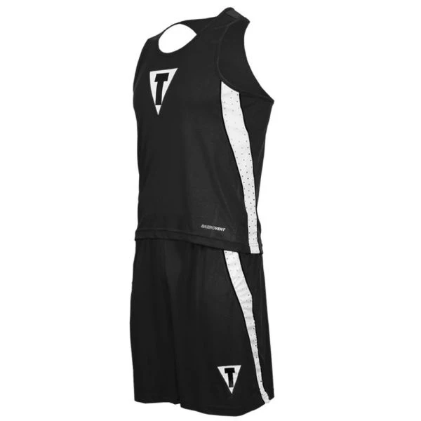 TITLE Performance Aerovant Amateur Boxing Set – A scientific blend of performance polyester and Spandex with a moisture wicking lining technology to create an elite, super lightweight ring outfit that is guaranteed to perform, and impress. Complete with performance trunks that are generously cut for excellent freedom of movement and splash. Shorts feature an extra-wide 4″, 7-strand elastic contrast waistband and are cut to above the knees length. Jersey is crafted in international style with wider shoulder straps that stay secure and won’t move during battle. Includes intricate Aerovent® top and bottom insets that allow hot air release during battle, and helps keep athlete cool and dry. Incredibly lightweight, moisture-wicking, looser-fitting performance technology to help stay cool, dry and in control. Fully machine washable.